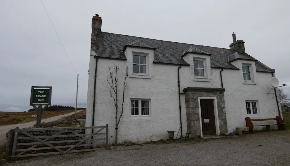 The Crask Inn is in a very remote location, about 10 miles north of the small town of Lairg. There is a phone signal, but no broadband connection, and the hotel's electricity supply is powered by a generator.