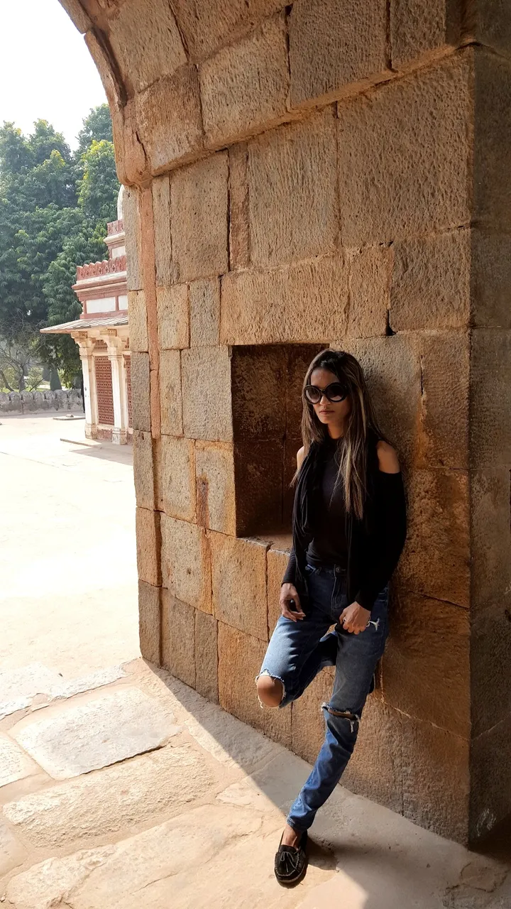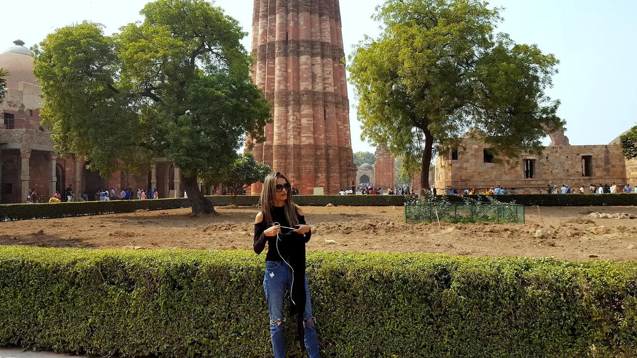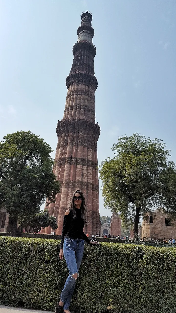 Don't look at me, I was skinny then. The tower was established to celebrate Muslim dominance in Delhi and the first three-stories made with Red sandstone and other two made with sandstones and marbles. source.