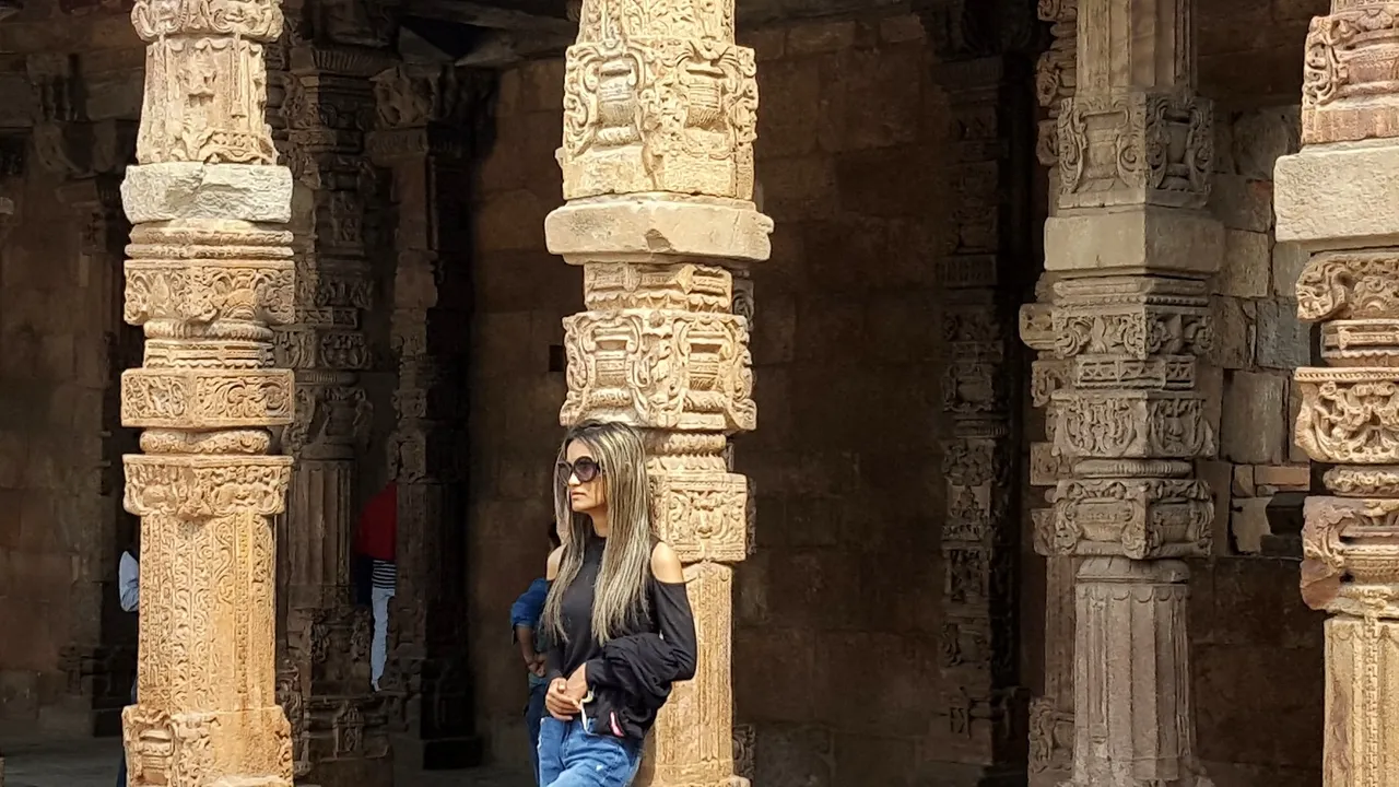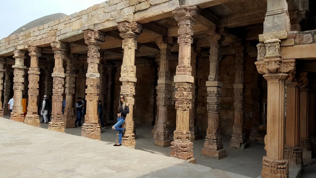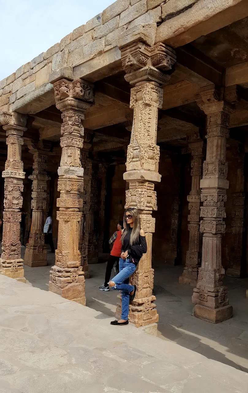 This is an old building structure of Qutub Minar Complex, You can see how beautiful artistic those columns are. Such a beautiful crafting work.