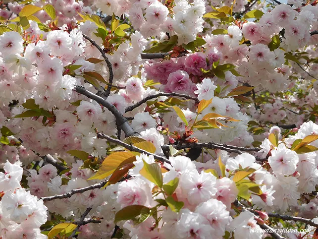 Later I learned that all these trees belong to Prunus serrulata, that is, varieties of Sakura - Japanese cherry.