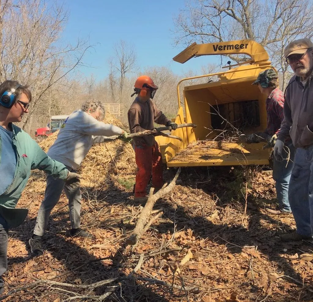 That's why I was so happy to have the ONE - Ozark Neighborly Exchange - group come to our homestead with the wood chipper they procured through a local grant!