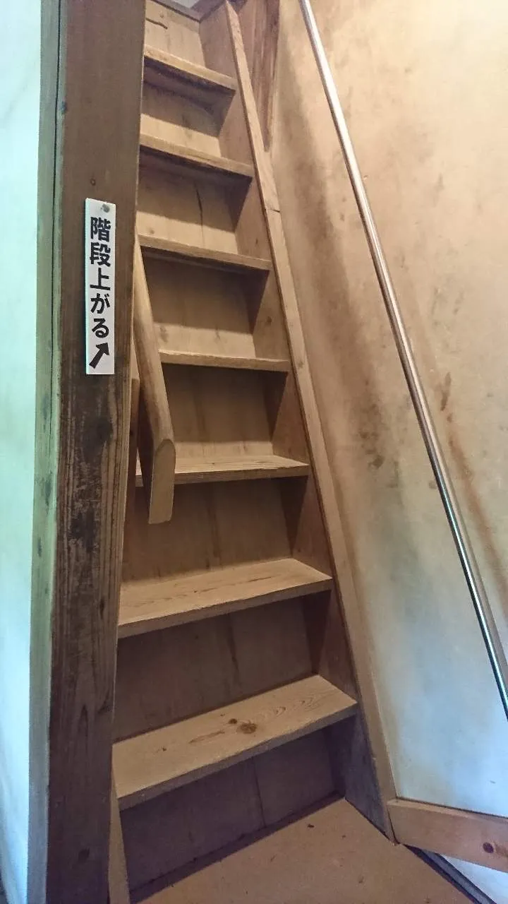 The staircase is narrow and small because it is an old Japanese standard