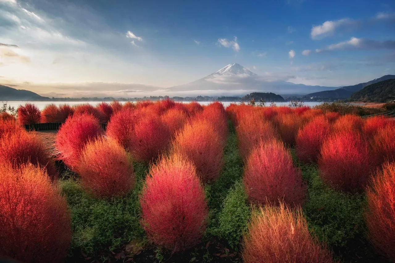 I wanted to take photos of Mt.Fuji and Kokia because Kokia is so beautiful when it turns red!