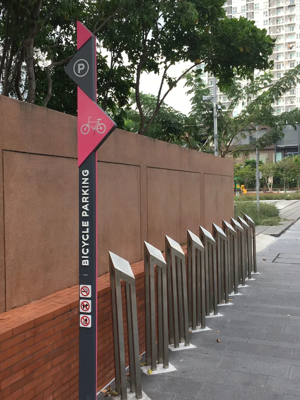 공원 주변으로 6개의 출입구가 있고 각 출입구에는 자전거를 거치 할 수 있는 곳이 마련되어있습니다. 녹지의 취지에 맞춘 디자인입니다.흡연금지, 동물동반금지, 쓰레기 버리지 말라는 표시가 있군요. 자전거는 가지고 들어 갈수는 있지만 탈 수는 없습니다. 끌고 다닐수만~~~