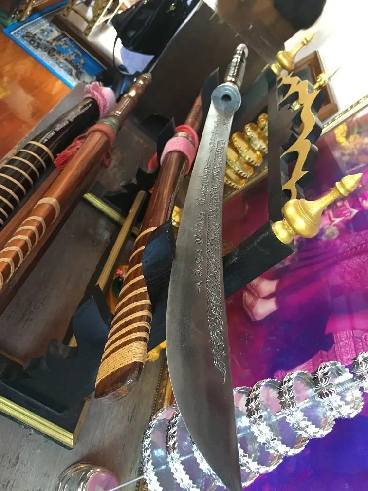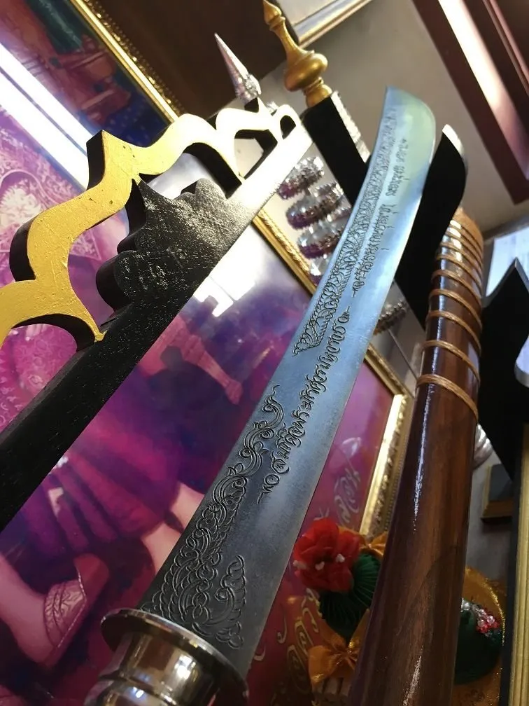 톤부리 왕국의 발생은 앙코르 왓 지역까지 영역을 넓혔던 아유타야 왕조의 몰락에서 시작됩니다. 미얀마와의 잦은 전쟁으로 남쪽으로의 이동이 불가피했던 상황에서 딱씬왕은 탁월한 지도력으로 미얀마 군을 물리칩니다. 침략군으로 최선봉에 참가한 몬족은 전쟁 이후에 미얀마와의 갈등으로 돌아가지 않고 짜오프라야 강 주변에 정착하고 살게 됩니다. - 태국의 검은 베는 것보다 무게에 중점을 두는 듯 합니다. 날카롭게 보이기 보단 둔탁하게 보입니다.