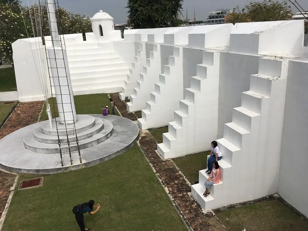 - 밖으로 향합니다. 당시에 설치된 포대를 보기위하여 입니다. 들어 온 문으로 다시 나갑니다. 딱씩왕은 용감하고 백성을 사랑하는 왕이었다는데 톤부리 왕조는 왜 1대로 끝을 맺었을까요? 톤부리 왕조를 생각하면 조금 안타깝습니다. 출구로 보이는 딱씬왕의 뒷 모습이 그래서 왜로워 보이나 봅니다.