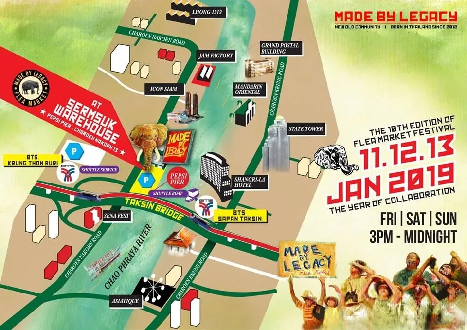 쉽게 가는 방법 : BTS 지상철 Saphan Taksin역에서 하차 그리고 배를 타고 강건너로 이동 하면 선착장 바로 옆에 행사장이 위치함.