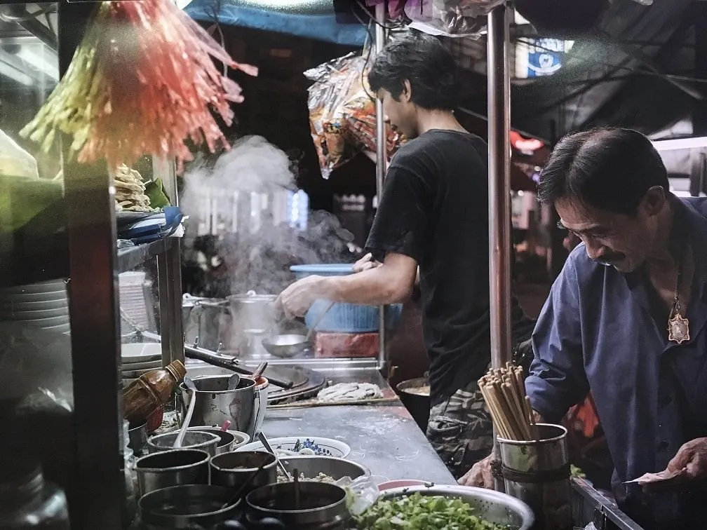 - 가운데 리어카 좌판은 그가 오랫동안 보아온 상상속의 리어커가 아닐까? 합니다. 아직도 방콕엔 이런 리어카가 영업시간이 되면 실롬거리에 줄을 지어 쏟아져 나옵니다.
