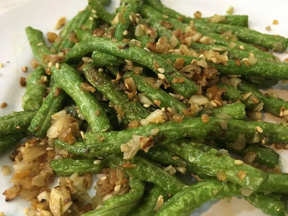 - 그리고 그린콩 줄기를 마늘을 넣고 쎈불에 볶아 냅니다. 비린내 안납니다.