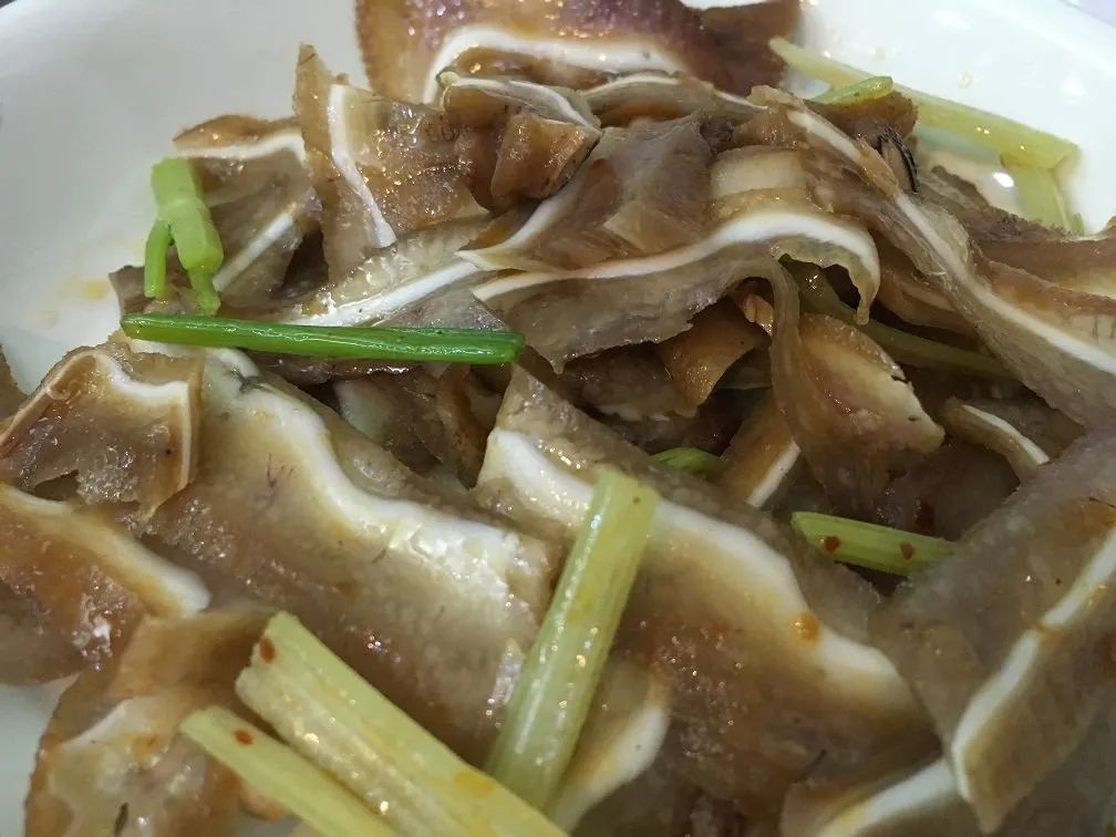 - 쫄깃하게 익힌 돼지귀 요리입니다. 샐러리를 얹어서 향기가 풍부하게 서빙이 됩니다.