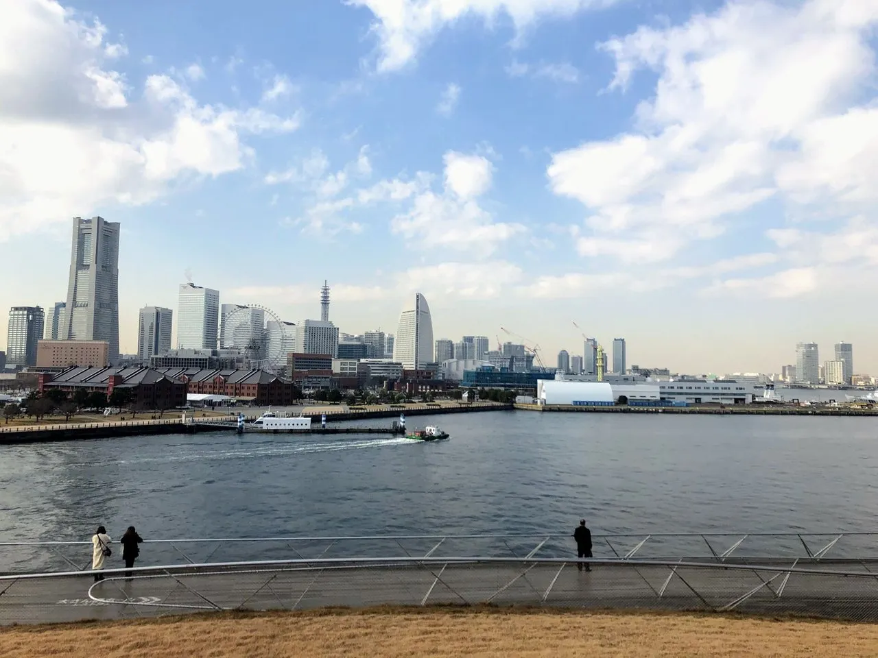 👆 위로 올라가보니 바다를 가운데 두고 도시가 보입니다. (#아카렌가 창고 #대관람차 등등)
