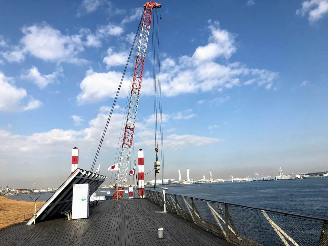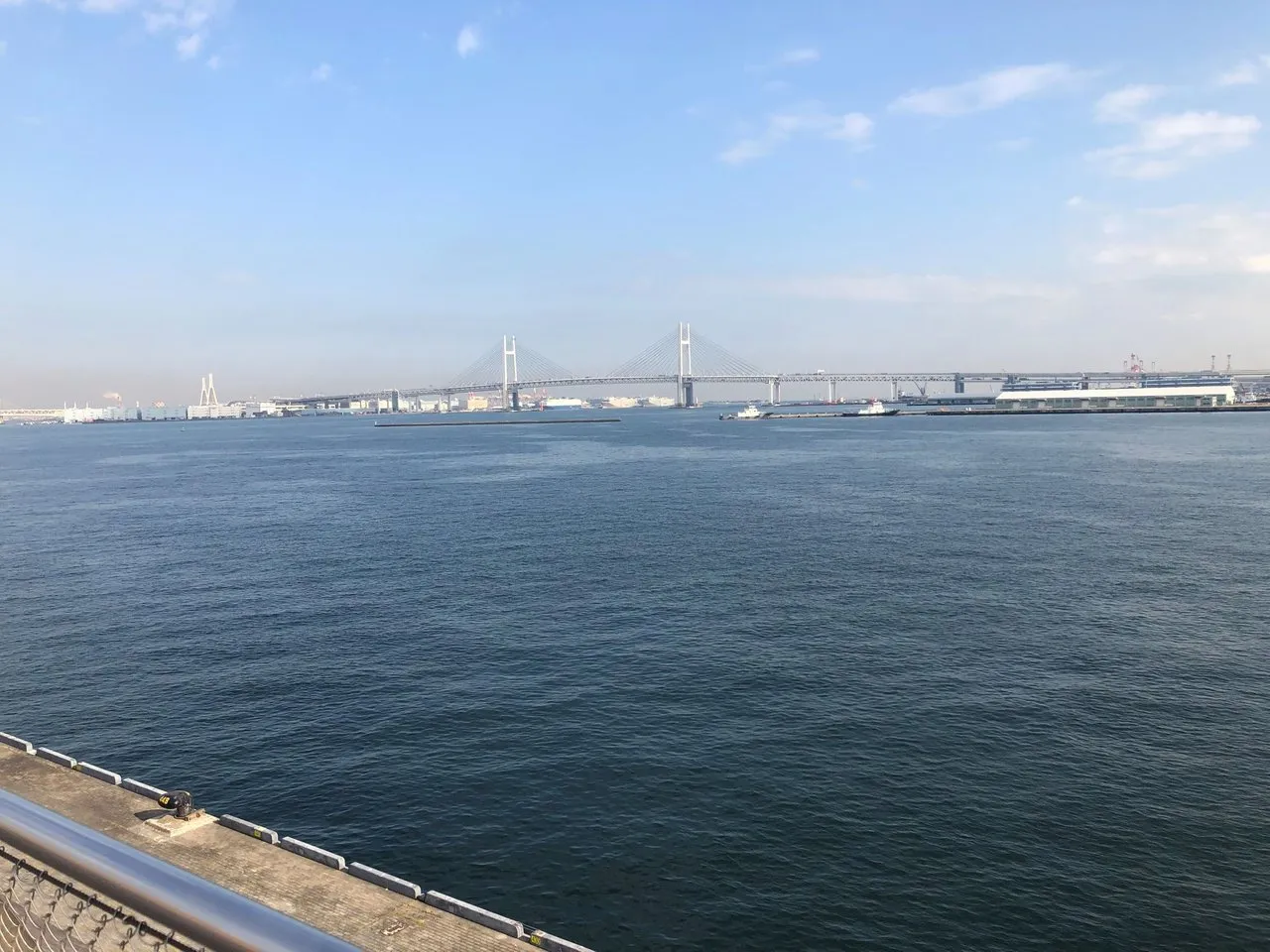 👆또 오른쪽으로 돌리니 이런 모습니다. 멋진 바다위에 요코하마 베이브릿지 라고 하는 다리가 시원하게 놓여져 있네요. (#길이는 850미터 #꽤 크다?)