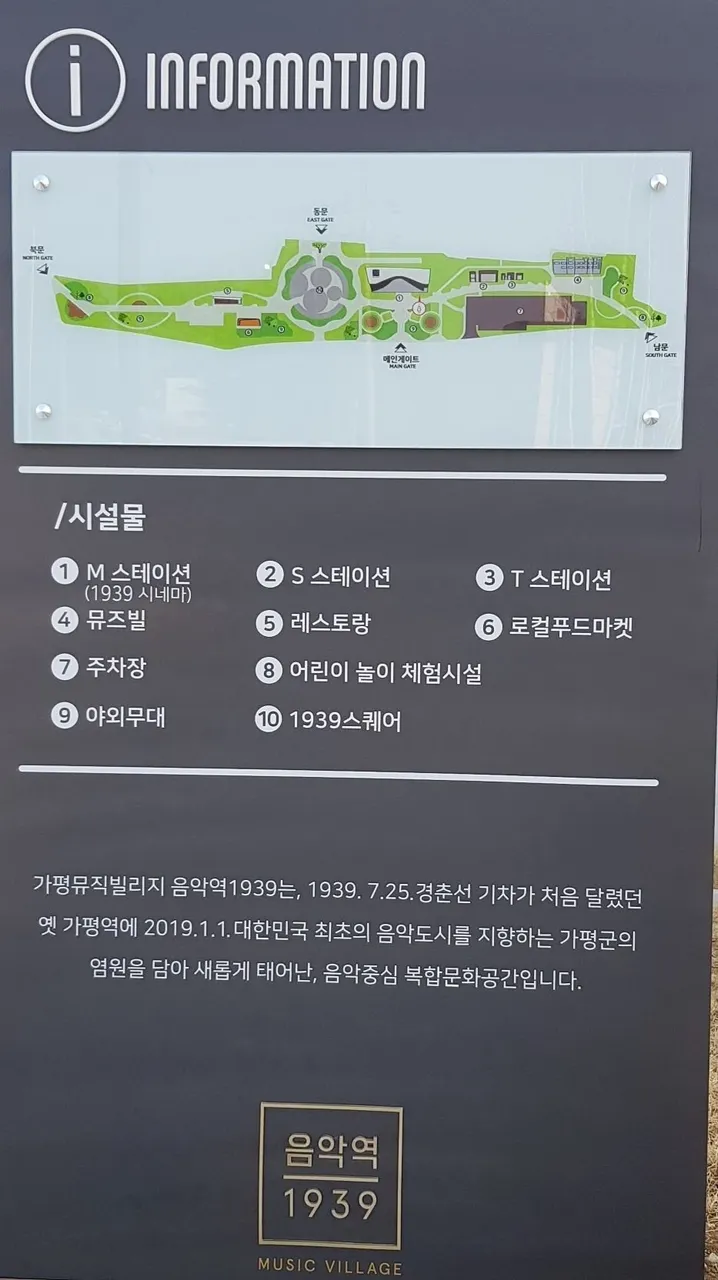 가평뮤직빌리지 음악역1939는, 1939.7.25. 경춘선 기차가 처음달렸던 옛 가평역에 2019.1.1. 대한민국최초의 음악도시를 지향하는 가평군의 염원을 담아 새롭개 태어난, 음악중심 복합문화공간입니다.