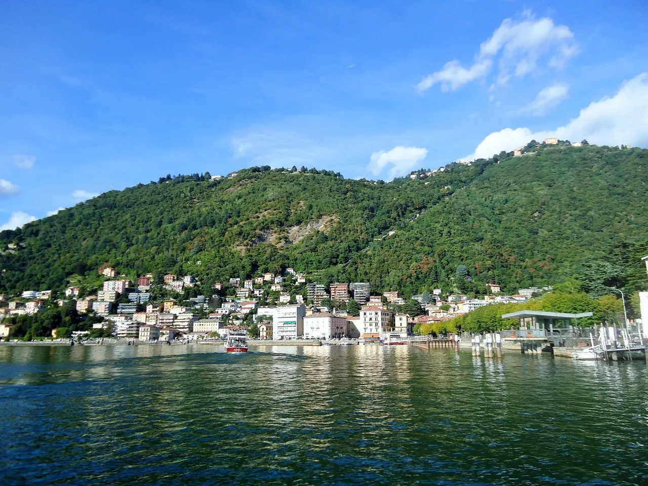 멀어져가는 꼬모 시내. 멀리 보이는 두오모성당의 돔이 보인다.