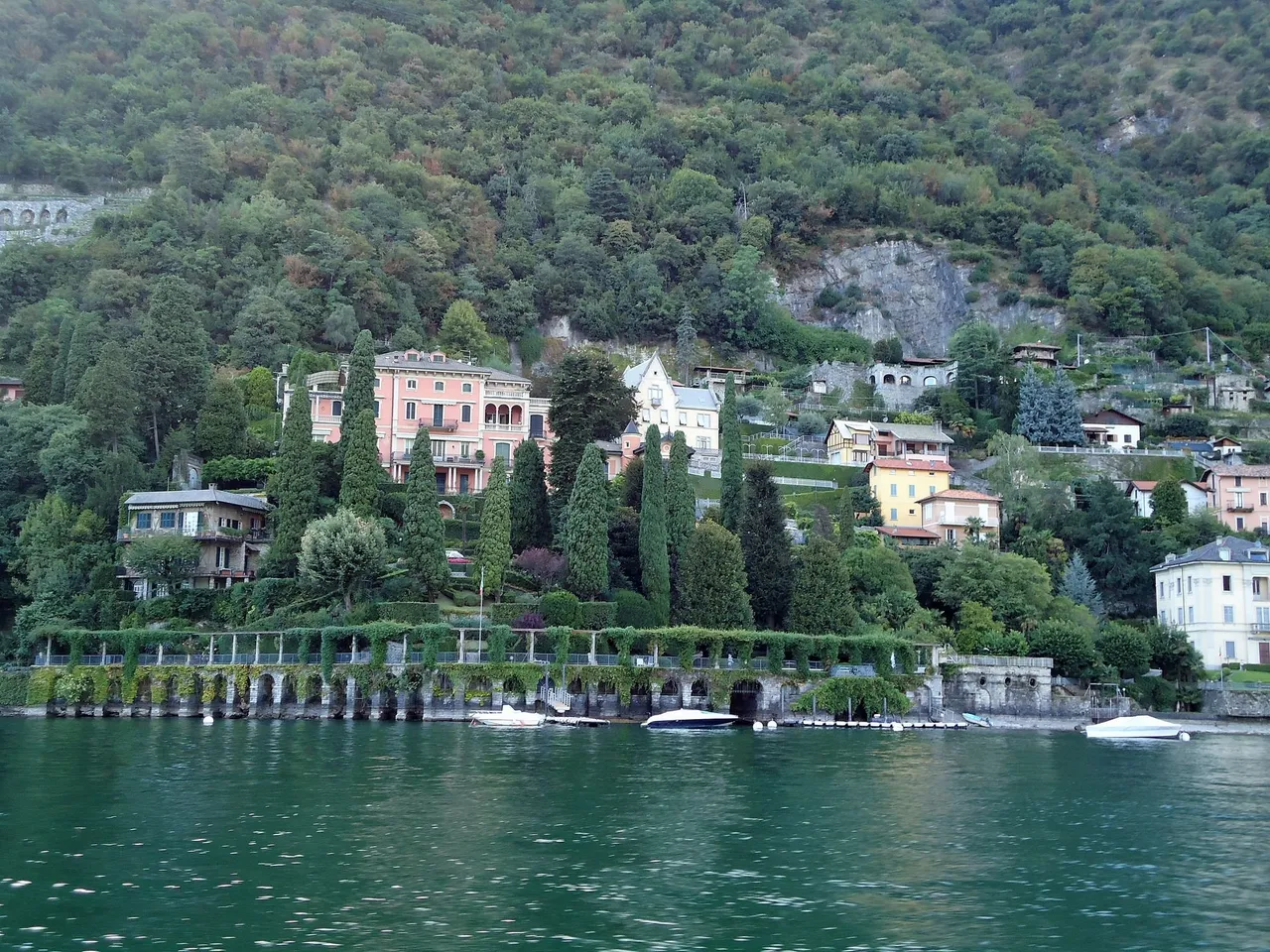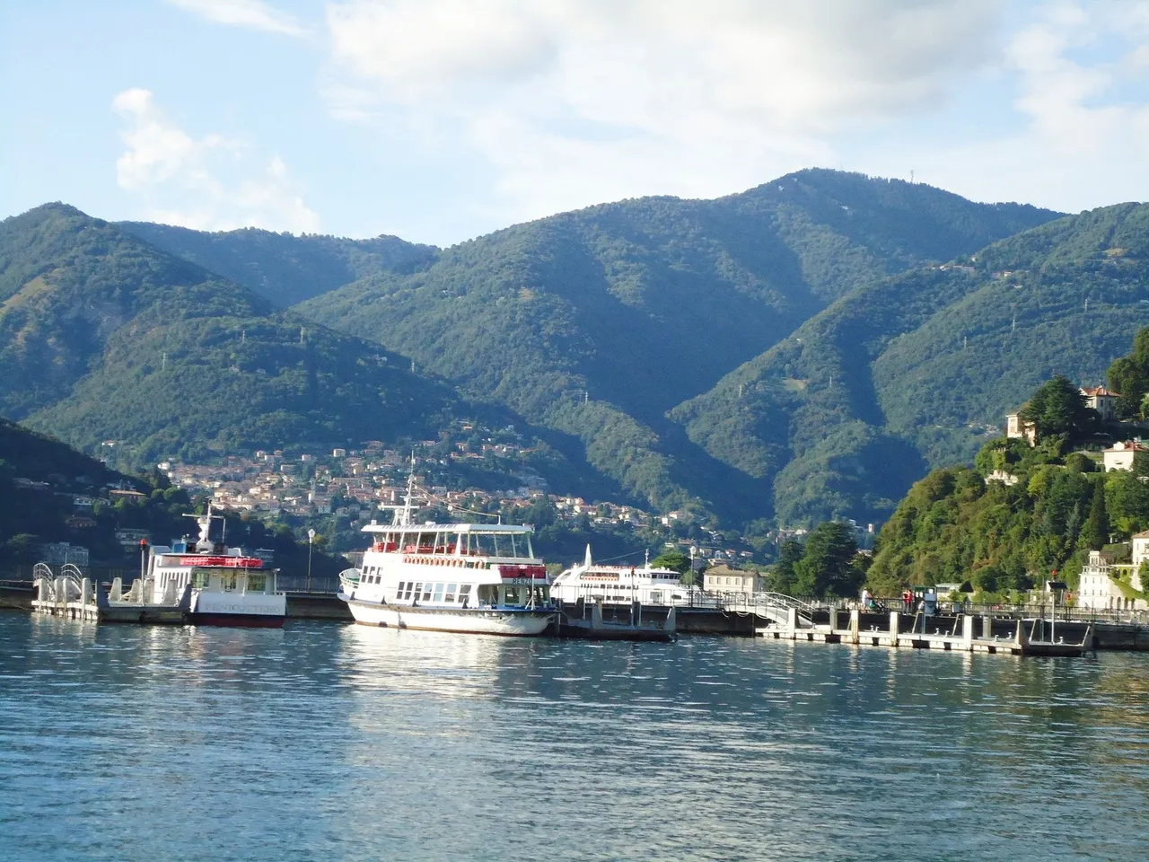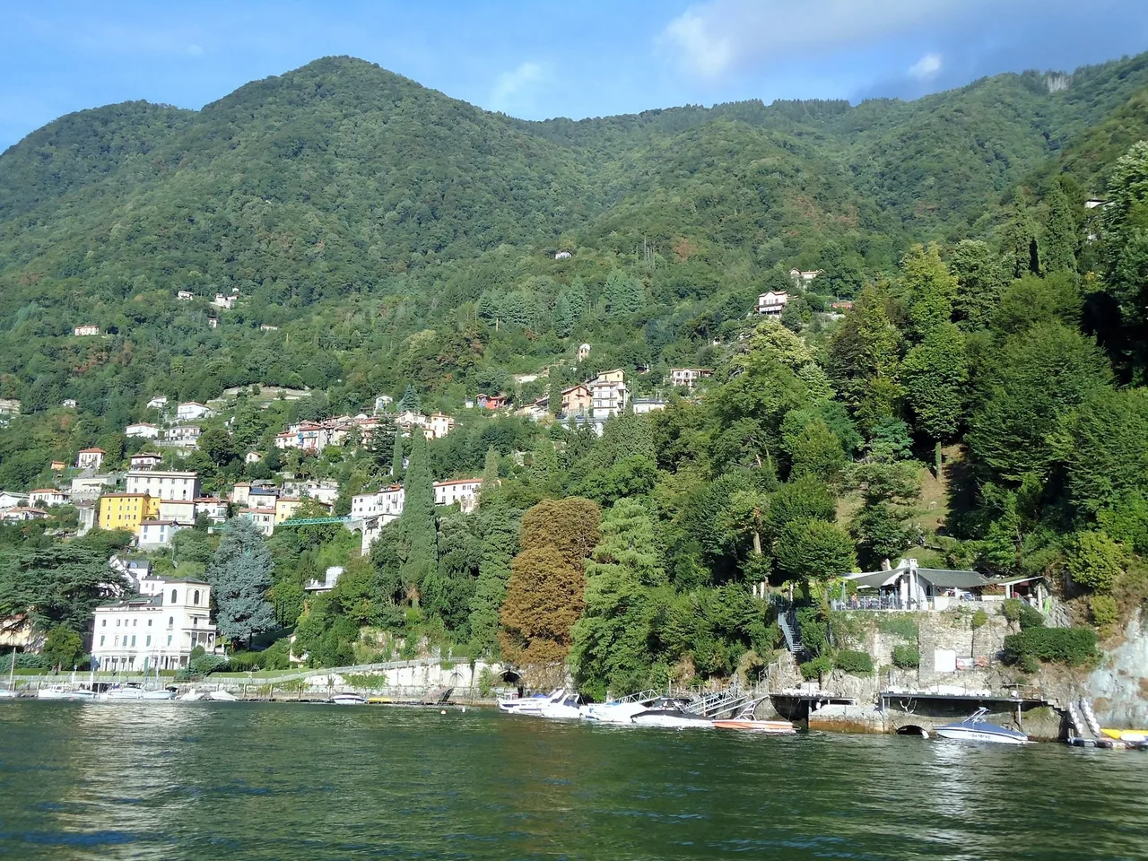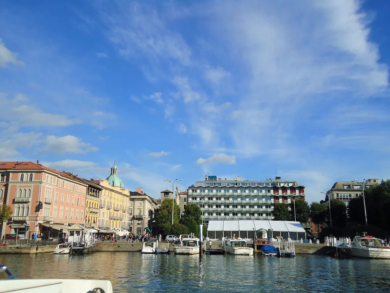 꼬모 호수 유람을 마치고 들어오며 보게 된 정박하고 있는 유람선들.