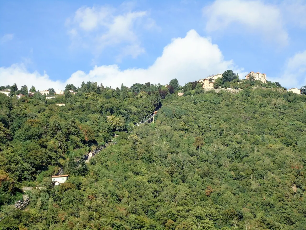 유람선 주변에는 멋진 건물들이 많이 보이고, 산 정상까지 운행하는 푸니쿨라가 운행할 수 있는 시설이 보였다.