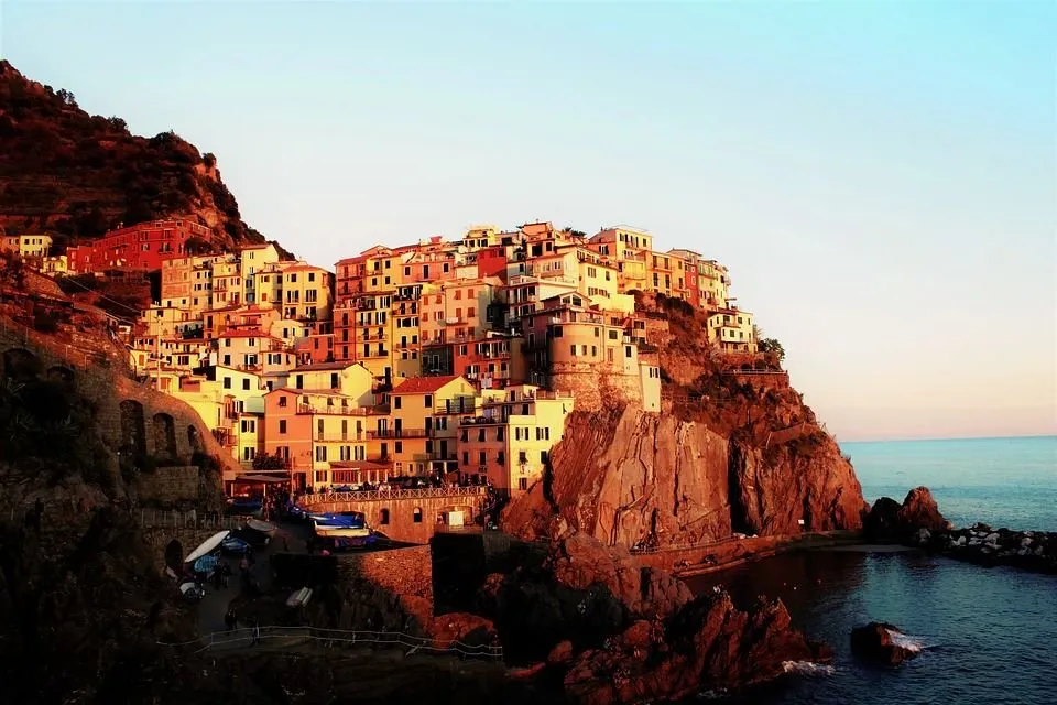 친퀘테레의 대표적인 풍경이 되는 마을 사진.
