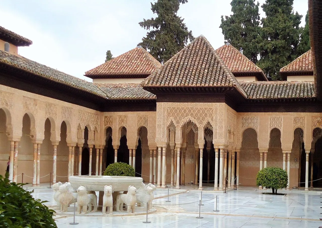 사자중정으로도 불리는 파티오 데 로스 레오네스는 중정. 중정 가운데 힘과 용기의 상징인 12마리 흰 대리석 사자상으로 떠받친 설화석고 수반(水盤)인 '사자분수'가 있기 때문에 그러한 이름이 붙었다.