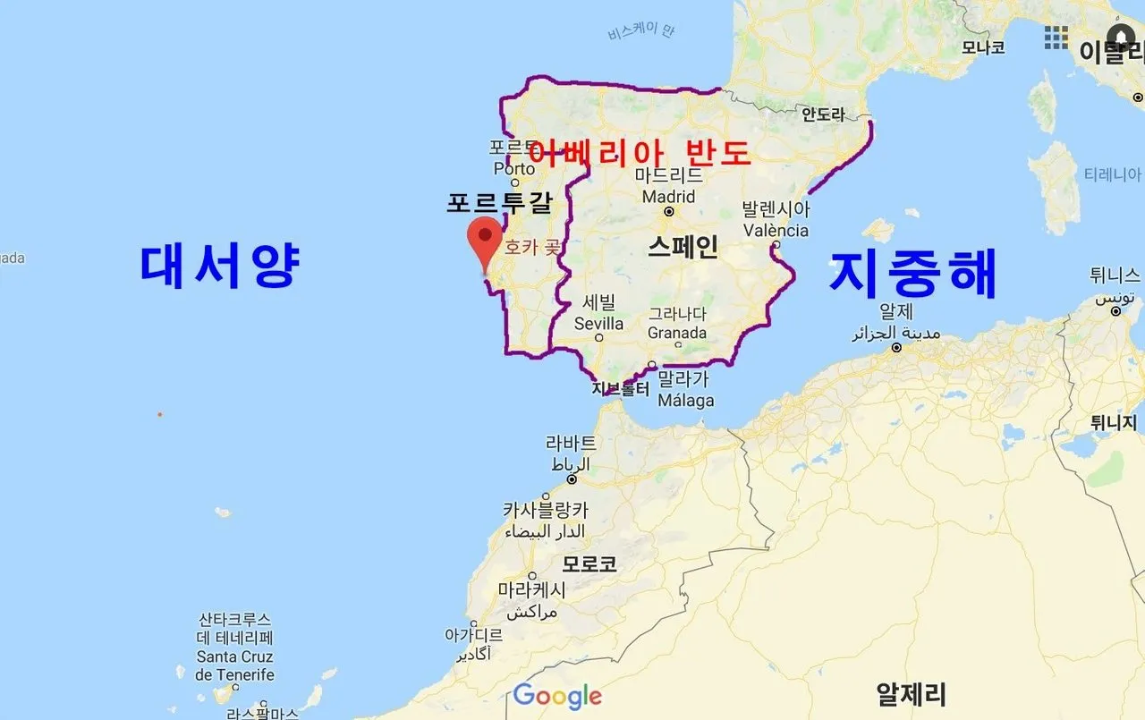 유럽대륙의 남서쪽 끝에 있는 이베리아 반도는 동쪽의 스페인과 서쪽의 포르투갈이 차지하고 있고, 이베리아 반도의 남쪽과 동쪽은 지중해, 서쪽으로는 대서양과 접하고 있다.