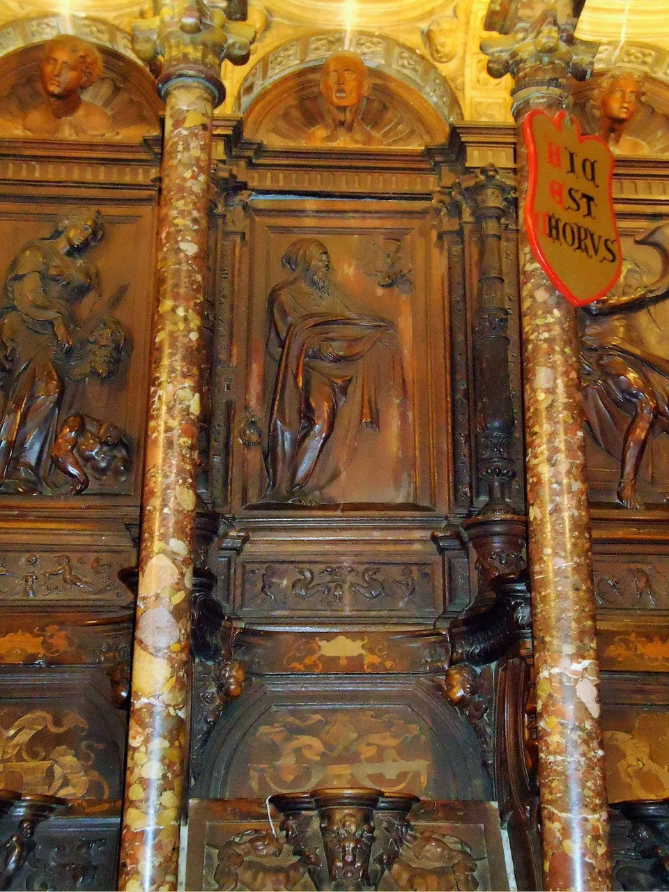 중앙 예배당 제단. 과거 당시에는 문맹자들이 많아 성경의 내용을 그림으로 조각하여 종교를 알렸다고 한다. 천정의 그물 무늬도 아름답다