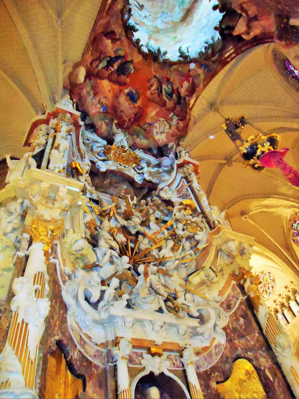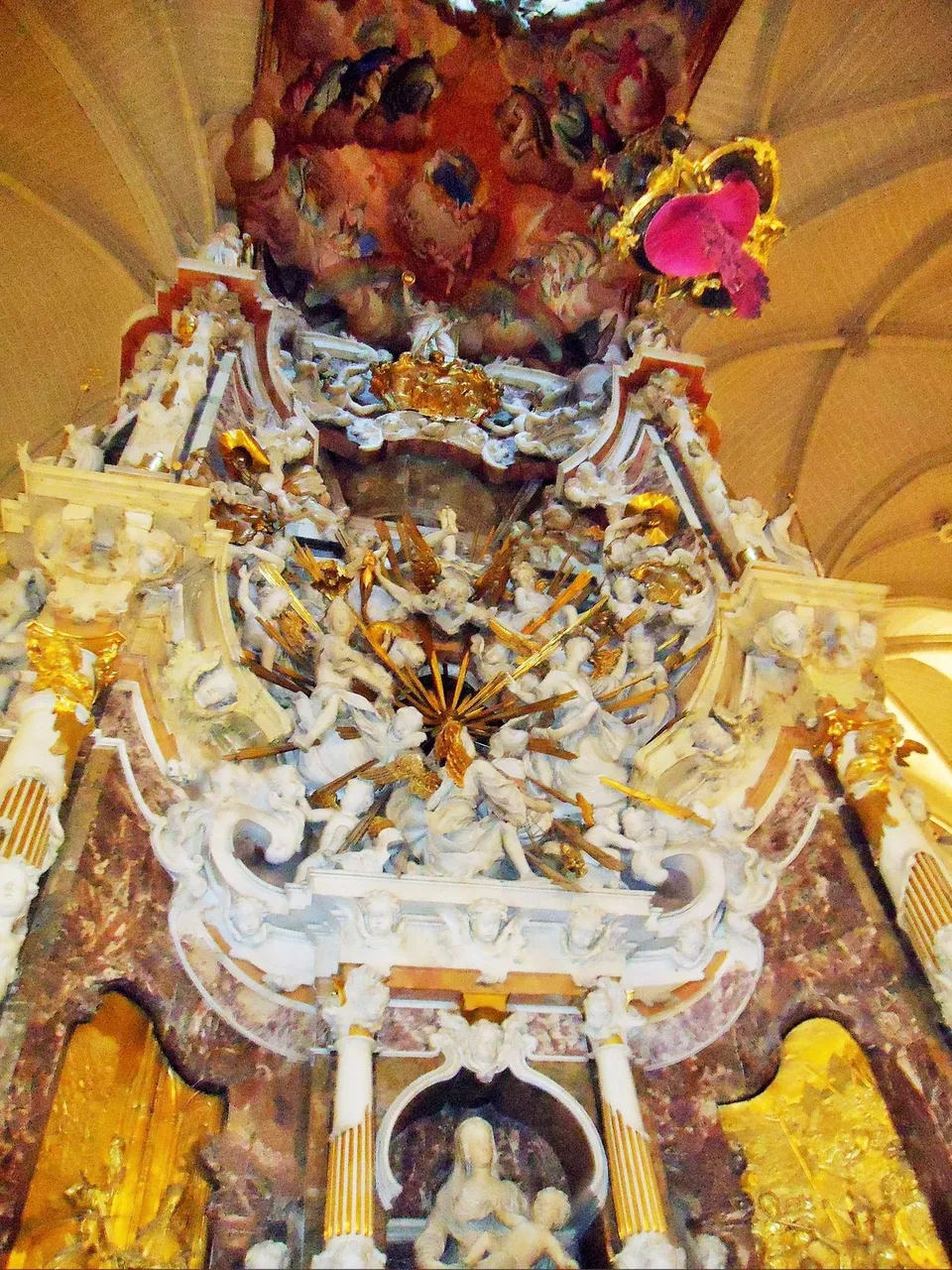 지금까지 어느 성당에서도 보지 못한 독특하고 아름다운 채광창으로, 제단 뒤 장식 주변은 대리석과 석회로 만들어졌으며 황금색이 많이 사용되어 무척 화려하다.