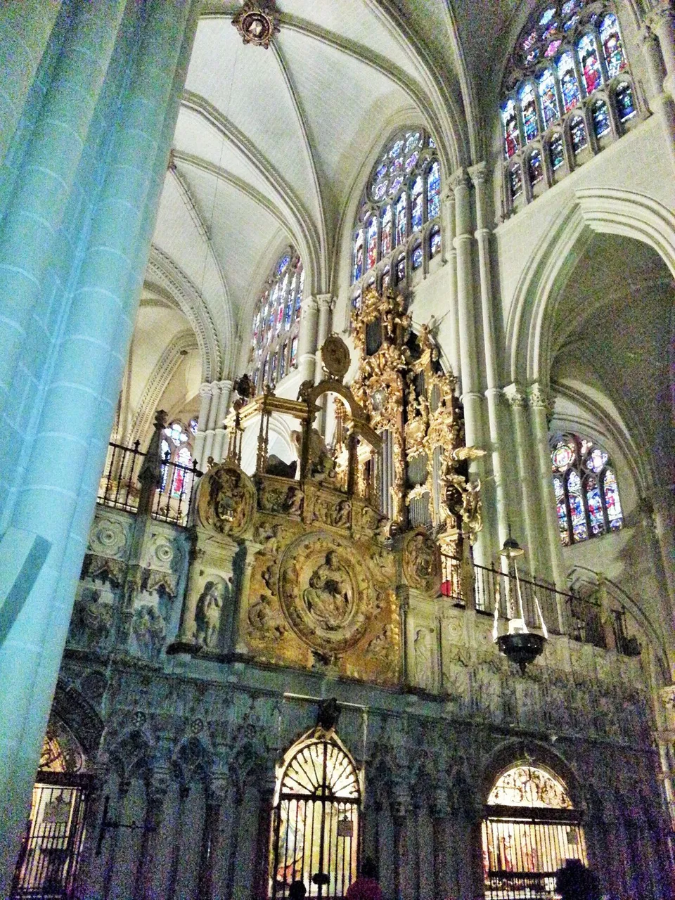 유럽에서 가장 뛰어난 고딕양식을 지닌 성당 중 하나로 페르난도 3세가 1227년 건설을 시작하여 266년이 지난 1493년에 완성된 똘레도 대성당은 창문의 왼쪽에 고딕양식 종탑을, 오른쪽에는 모자라빅채플을 세웠다