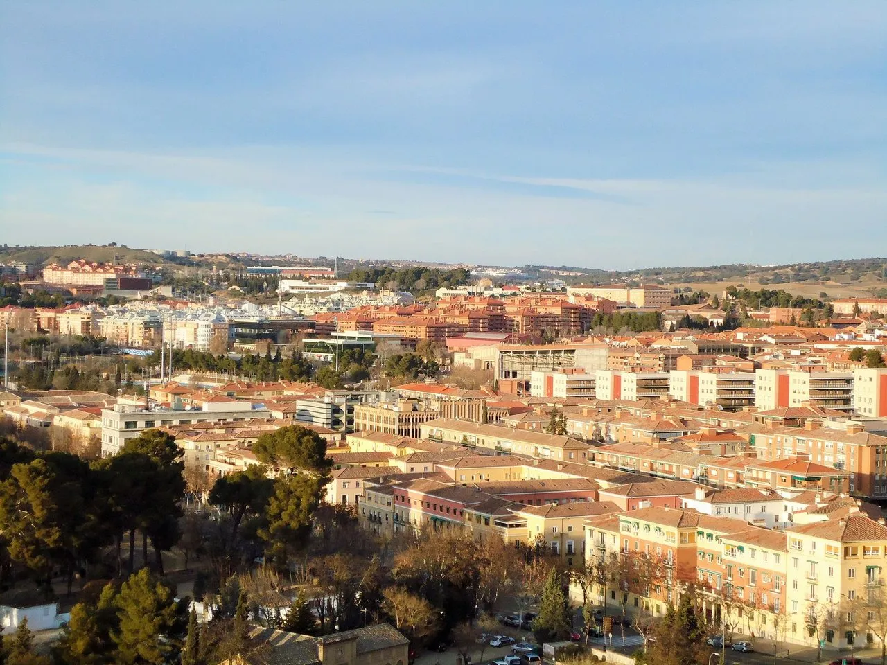 톨레도 구시가지 모습. 오른쪽 건물은 톨레도 알카사르(Toledo Alcázar. 요새)로서 톨레도에서 가장 높은 곳에 위치하며 멀리에서도 한눈에 들어올 만큼 거대한 모습을 하고 있다.