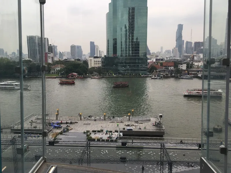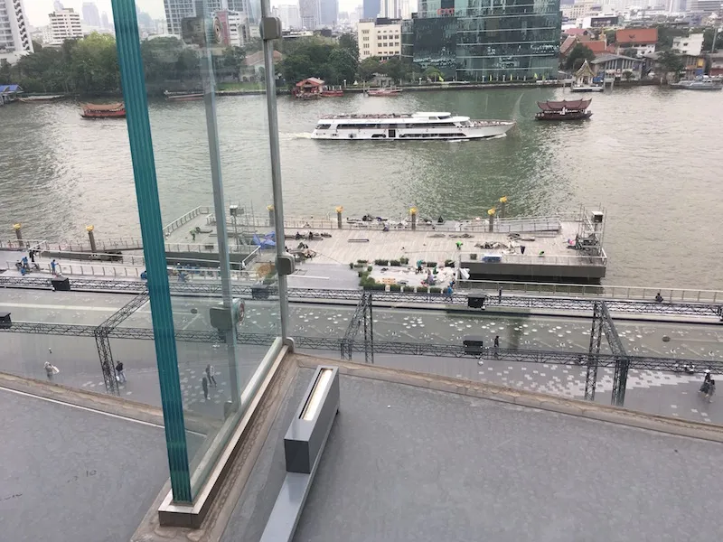 역시 애플스토어의 특징인 통유리건 축과 앞에 공원이 있습니다. 한국에 개장했을 때 가보질 못해서 애플스토어 방문은 처음이네요. 특히 방콕의 강건너 이번에 새로 생긴 Icon Siam이란 큰 쇼핑몰 내부에 입점했는데요. 그러다 보니 이쪽은 완전히 전세를 냈군요. 공원에서 차오프라야 강이 내려다 보입니다. 오른쪽에 임시 선착장을 두고 아이콘시암 쇼핑몰 전용 선착장이 만들어지고 있군요. 방콕은 강 양쪽에 선착장이 늘어서 있어 배를 타고 자유롭게 다닐 수 있는 곳이죠.