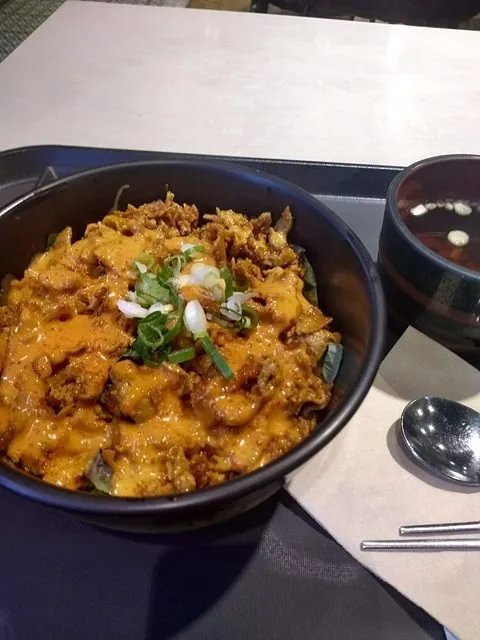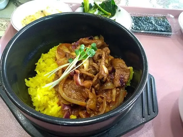 제육덮밥. 새콤한 드레싱이 독특합니다.