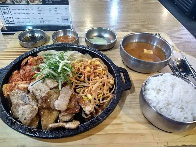 혼자 삼겹살먹기를 시도해 봅니다. 막 혼자서 고기 굽고 그런 건 아니고 미리 고기 몇점 구워서 나오는 식이네요.