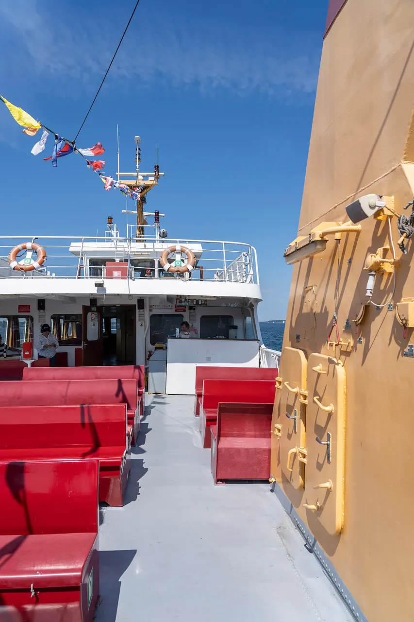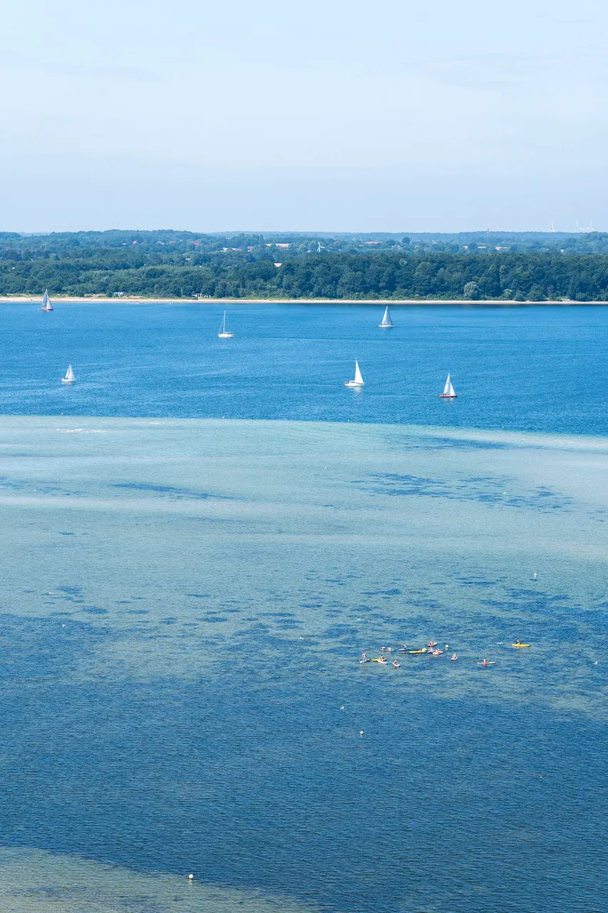 Leider hatten wir zwecks meiner anstehenden Zugverbindung nach Kopenhagen nicht die Zeit ewig in Laboe zu verweilen. Somit gingen wir nach dem Besuch am Denkmal, sogar ohne einen kühlen Abstecher ins Meer, zur Fähre. Das war gefühlt meine erste richtige Bootsfahrt seit zehn Jahren. Es war absolut entspannend und schön die ganzen anderen Schiffe, die verschiedene Strände und alten Gebäude der Schiffsindustrie von der Fähre aus zu beobachten.
