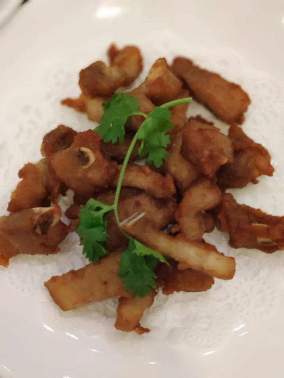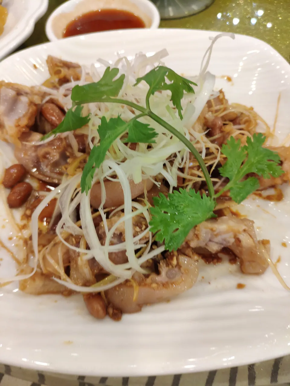 第一次尝试这种外国上档次的酒,说实话这个酒不好喝,还不如喝点啤酒。还是叉烧、猪脚、粉包秋葵合我的胃口。